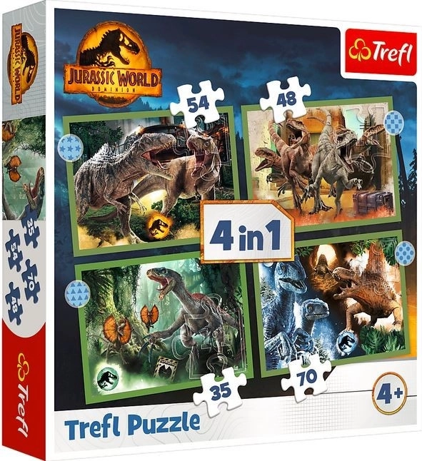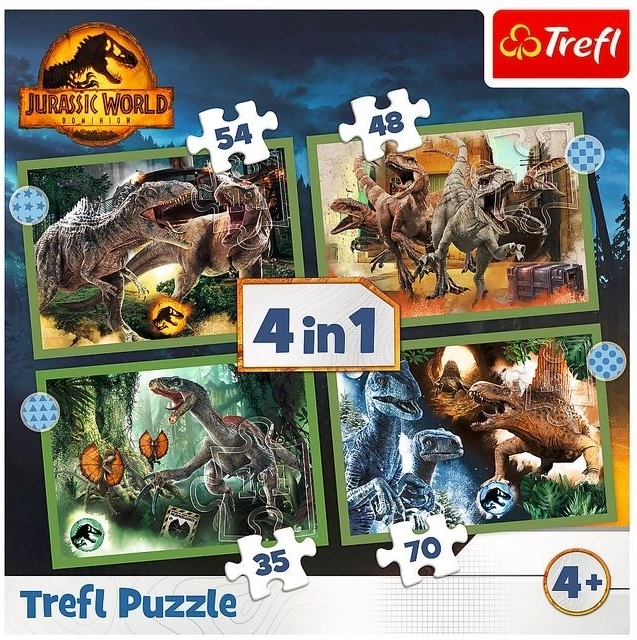 Entdecken Sie die Welt der gefährlichen Dinosaurier mit diesem 4-in-1-Puzzle-Set, inspiriert vom Film Jurassic World. Jedes Motiv versetzt Sie in die Ära der Dinosaurier.