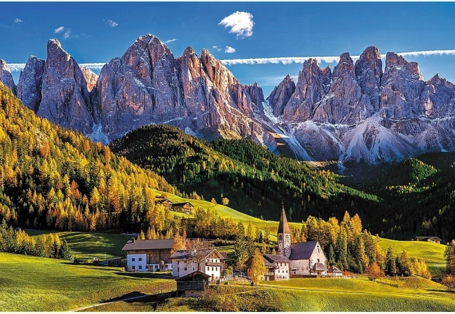 Reisen Sie ins malerische Tal Val di Funes im Herzen der Dolomiten und setzen Sie ein atemberaubendes Panorama mit kräftigen Farben und dramatischen Berggipfeln zusammen. Dank präziser Stanzung und stabiler Teile hält das Bild perfekt zusammen, und das Puzzeln ist flüssig und angenehm.