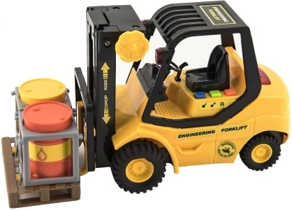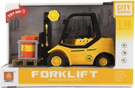 Gabelstapler aus Kunststoff 23cm mit Schwungrad auf Batterie mit Sound und Licht in Box 29x19x12cm