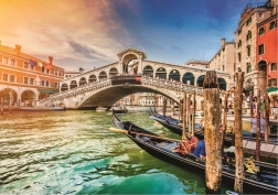 Tauchen Sie ein in die romantische Atmosphäre Venedigs mit dem Bild der berühmten Rialtobrücke bei Sonnenuntergang. Die TREFL UFT Serie ermöglicht das Kombinieren mehrerer Puzzle-Motive zu einer großen Collage – einfach, präzise und ohne Einschränkungen. Ein spezieller Stanzschnitt stellt sicher, dass die Teile kompatibler UFT-Sets passgenau ineinandergreifen und das fertige Bild sicher transportiert werden kann, ohne zu zerfallen.