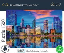 Holen Sie sich die Atmosphäre einer modernen Metropole mit dem Motiv der Spiegelung der Stadt Perth in Australien nach Hause. Die TREFL UFT-Serie hebt klassisches Puzzeln auf die nächste Stufe – dank spezieller Stanzung können Sie mehrere UFT-Puzzles kombinieren und eine eigene großformatige Collage ohne Einschränkungen erstellen.