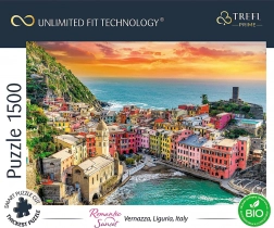 Genießen Sie die Schönheit des Sonnenuntergangs mit dem einzigartigen Puzzle TREFL Romantischer Sonnenuntergang: Vernazza, Ligurien, Italien mit 1500 Teilen. Dank der Unlimited Fit Technology (UFT) können Sie eigene Puzzle-Collagen erstellen.