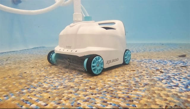 Der INTEX ZX300 ist ein zuverlässiger automatischer Poolsauger, der Ihren Pool die ganze Saison über sauber hält. Dank vier Rädern, starker Saugleistung und zwei rotierenden Bürsten bewältigt er Sand, Laub und Ablagerungen am Boden und an den Wänden. Er wird direkt an die Filterpumpe angeschlossen und arbeitet vollautomatisch – Sie genießen einfach das Wasser.