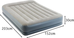 Entdecken Sie zuverlässigen und bequemen Schlaf, wann immer Sie ihn brauchen. Das aufblasbare Bett INTEX Pillow Rest Mid-Rise kombiniert die robuste Dura-Beam-Konstruktion mit Fiber-Tech-Fasern für stabile Unterstützung ohne Durchhängen und eine angenehme Velours- (beflockte) Oberfläche für ein weiches Gefühl. Die Doppelbettmaße 203 × 152 × 30 cm bieten komfortablen Platz für zwei Personen.