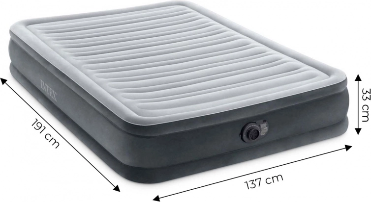 Doppel-Luftmatratze INTEX 191×137×33 cm mit automatischer Pumpe, Tragfähigkeit 272 kg und Veloursoberfläche. Stabile Fiber-Tech-, Dura-Beam-Technologie.