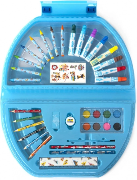 Metallisches Malset-Köfferchen Paw Patrol – enthält Filzstifte, Wachsmalstifte, Buntstifte, Wasserfarben, Bleistifte, Lineal, Radiergummi, Anspitzer, Pinsel und Aufkleber.