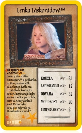 Taucht ein in Harrys fünftes Schuljahr in Hogwarts mit der Top-Trumps-Edition Harry Potter und der Orden des Phönix. Im Deck findet ihr beliebte Helden und Schurken – von Harry, Ron und Hermine bis zu Professor Umbridge, Bellatrix Lestrange und Lucius Malfoy. Jede Karte hat ihre Attribute, die entscheiden, wer am mutigsten, klügsten oder hinterlistigsten ist.