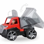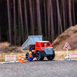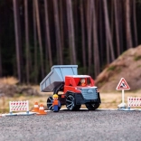 Die kippbare Mulde ist mit einer Sicherheitsverriegelung ausgestattet, die ein unbeabsichtigtes Auskippen der Ladung verhindert – ideal für realitätsnahes Bauspiel.