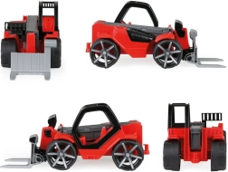 Dieser Teleskoplader besteht aus hochwertigem Kunststoff und bietet eine stabile Konstruktion, die intensivem Spiel standhält. Dank gummierter Räder mit leisem Lauf ist er auch ideal für das Spielen im Innenbereich. Mit der aufklappbaren Kabine und der aktiven Figur können Kinder leicht in die Rolle echter Baumaschinenführer schlüpfen.