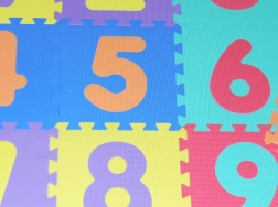 Praktischer Schaumteppich aus miteinander verbindbaren Teilen mit den Maßen 30 × 30 cm – ideal für Kinderzimmer und Spielecke. Die Teile haben eine geriffelte Oberfläche für bessere Stabilität und enthalten herausnehmbare Zahleneinsätze, die Lernen und Spaß zugleich fördern.