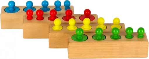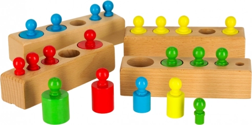 Montessori-Holzpuzzle – bunte Zylinder und Gewichte