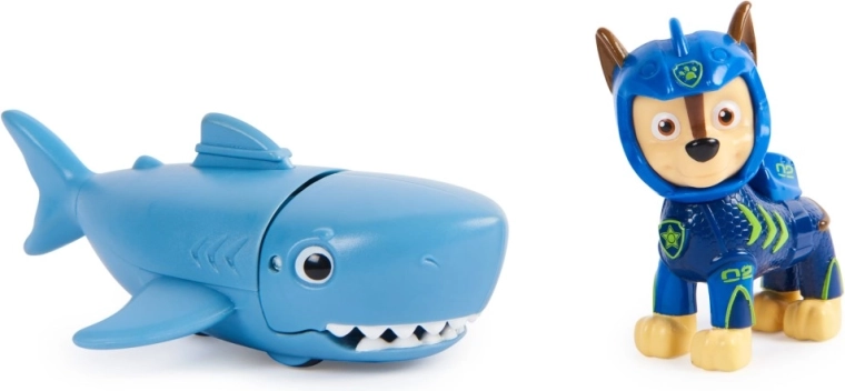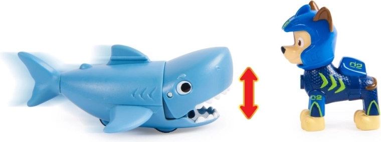 Die Chase-Figur trägt einen neuen Neoprenanzug, um für jede Unterwasser-Rettungsaktion gerüstet zu sein. Kinder können Chase auf dem Rücken seines Hai-Freundes befestigen und den Beißmechanismus mit einer einfachen Vorwärtsbewegung aktivieren. Authentische Details und ein vom Serienhit „PAW Patrol“ inspirierter Look ermöglichen stundenlangen Spielspaß und das Entdecken kreativer Rettungsmissionen.