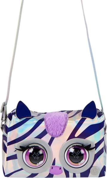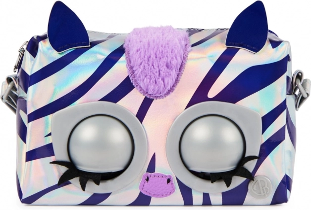 Entdecken Sie die interaktive Zebra-Handtasche von Purse Pets, die mit ihren großen zwinkernden Augen und berührungsempfindlichen Geräuschen besticht. Die Tasche kombiniert Funktionalität perfekt mit spielerischem Design.