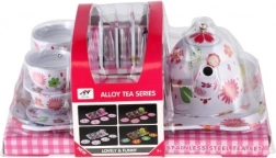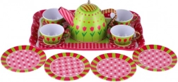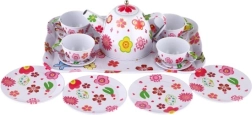 Veranstaltet eine zauberhafte Teeparty! Dieses hochwertige Kinder-Teeservice aus Metall enthält 14 Teile zum Servieren und für Rollenspiele. Dank der robusten Blechkonstruktion, der farbenfrohen Muster und des praktischen Tabletts ist es ideal für gemeinsames Spielen ab 3 Jahren. Hinweis: Es handelt sich nicht um Geschirr für den echten Gebrauch mit Getränken.