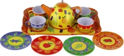 Dieses Kinder-Teeservice aus Blech bringt Freude am imaginären Servieren und am gesellschaftlichen Spiel. Das Set besteht aus Metall und ist daher stabil, langlebig und leicht für kleine Hände. Farbige Motive mit Blumen, Schmetterlingen oder Früchten fördern Kreativität und Fantasie, während das Serviertablett das Tragen und Spielen erleichtert.