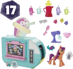 Serviere etwas Magie mit dem Sunny Starscout Smoothie Truck Spielset 2-in-1 My Little Pony. Sunny ist ein abenteuerlustiges Erdpony, das in My Little Pony: Make Your Mark in ihrem mobilen Smoothie-Truck süße Leckereien zubereitet. Das My Little Pony Set enthält eine 3-Zoll-große, bewegliche Ponyfigur, die Kinder in verschiedene Posen stellen können. Dieses Spielset mit Lebensmittel-Truck lässt sich zu einer Küche mit Spiellebensmitteln öffnen! Stell dir vor, du bereitest in dem Ofen Muffins oder im Mixer Smoothies zu. Drücke Sunnys Huf auf den Hebel des Trucks, um das Neonlicht einzuschalten und das Verkaufsfenster zu öffnen. Öffne dann den Truck, um die Küche im Inneren zu entdecken. Enthält 15 Zubehörteile, von denen einige an Sunnys Huf befestigt werden können. Der My Little Pony Lebensmittel-Truck, Spielsets und kleine Puppen sind tolle Geburtstagsgeschenke für Mädchen und Jungen ab 5 Jahren.