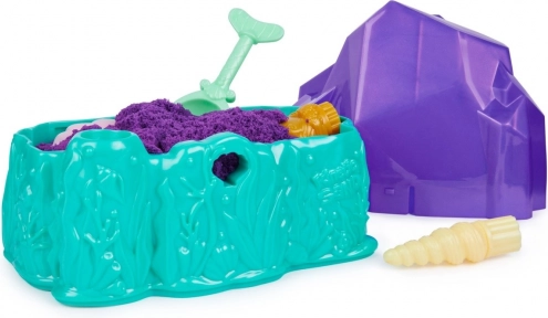 Entdecken Sie einen Schatz aus den Tiefen des Meeres mit dem kreativen Set Kinetic Sand Meerjungfrau. Das Set enthält 480 g farbigen Sand – neonfarben und glitzernd, eine praktische Kristallbox zum Spielen und Aufbewahren sowie lustige Werkzeuge zum Formen und Modellieren ohne Unordnung.