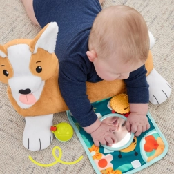 Genießen Sie Unterstützung und Spaß mit unserem hundeförmigen Kissen! Diese Fisher-Price-Unterlage bietet Kindern bequemen Halt beim Spielen in der Bauchlage, im Sitzen und bei der Pflege eines Plüschtiers.
