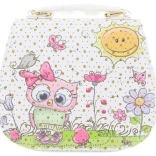 Eine niedliche Kinderhandtasche mit Eulenmotiv in Weiß, die jedes kleine Modeherz erfreut. Sie bietet kompakte Maße für Kleinigkeiten und ist ideal für den täglichen Gebrauch. Eine leichte, praktische und stilvolle Wahl für Kinder ab 3 Jahren.