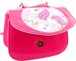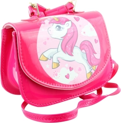Diese rosa Handtasche mit niedlichem Einhorn ist das perfekte Accessoire für den Alltag und besondere Anlässe. Die glänzende Oberfläche, goldfarbene Metalldetails und der verspielte Druck machen sie zu einem stylischen Lieblingsteil, das Kinder lieben.