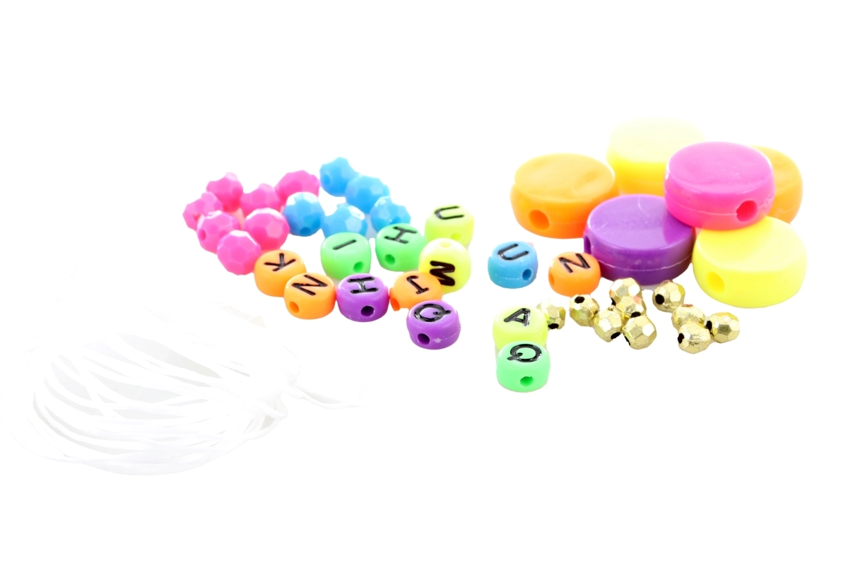 • Buchstabenperlen zum Gestalten von Namen und Schriftzügen