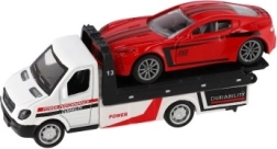 Abschleppwagen mit kleinem Auto, 11 cm, Rückziehmotor, Metall/Kunststoff, in Geschenkbox
