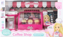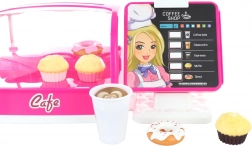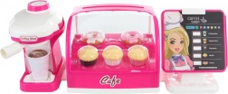 Genießen Sie den Spaß mit einem großen Kinder-Café, das eine Kaffeemaschine, einen Kühlschrank mit Törtchen und eine Kasse bietet, alles batteriebetrieben.
