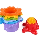 Dieses verspielte Set kombiniert Stapeln, Umfüllen und Entdecken. Die Becher in Form von Meerestieren haben unterschiedliche Größen und Perforationen, sodass das Wasser jeweils anders fließt – Kinder experimentieren gerne damit und lernen Ursache‑Wirkungs‑Zusammenhänge. Die Teile lassen sich leicht ineinanderstecken, nehmen wenig Platz ein und sind ideal für unterwegs.