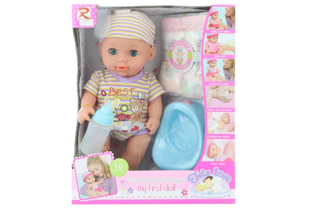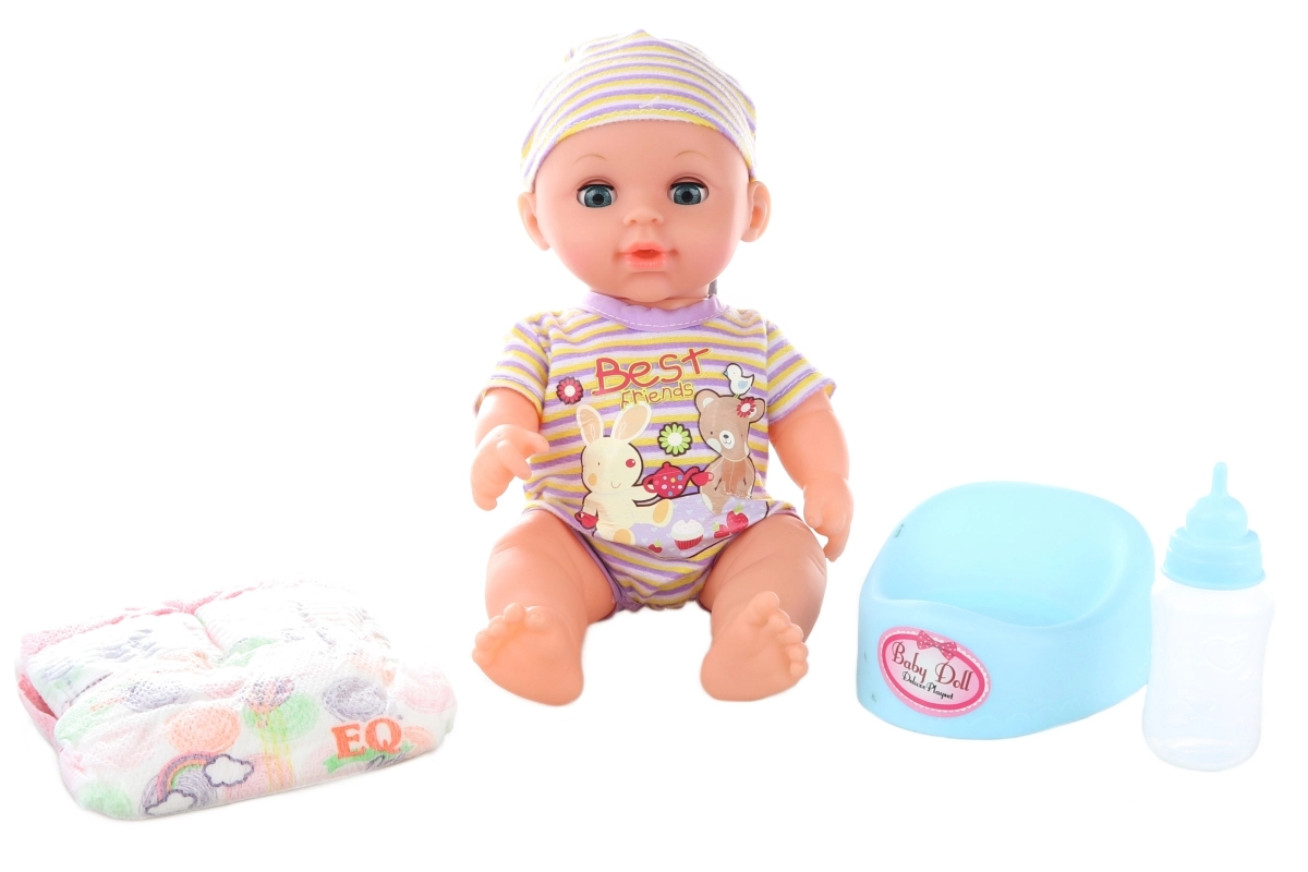 Kinder können das Baby mit dem Fläschchen füttern und auf das Töpfchen setzen. Die Pipi-Funktion unterstützt spielerisch das Erlernen hygienischer Gewohnheiten.