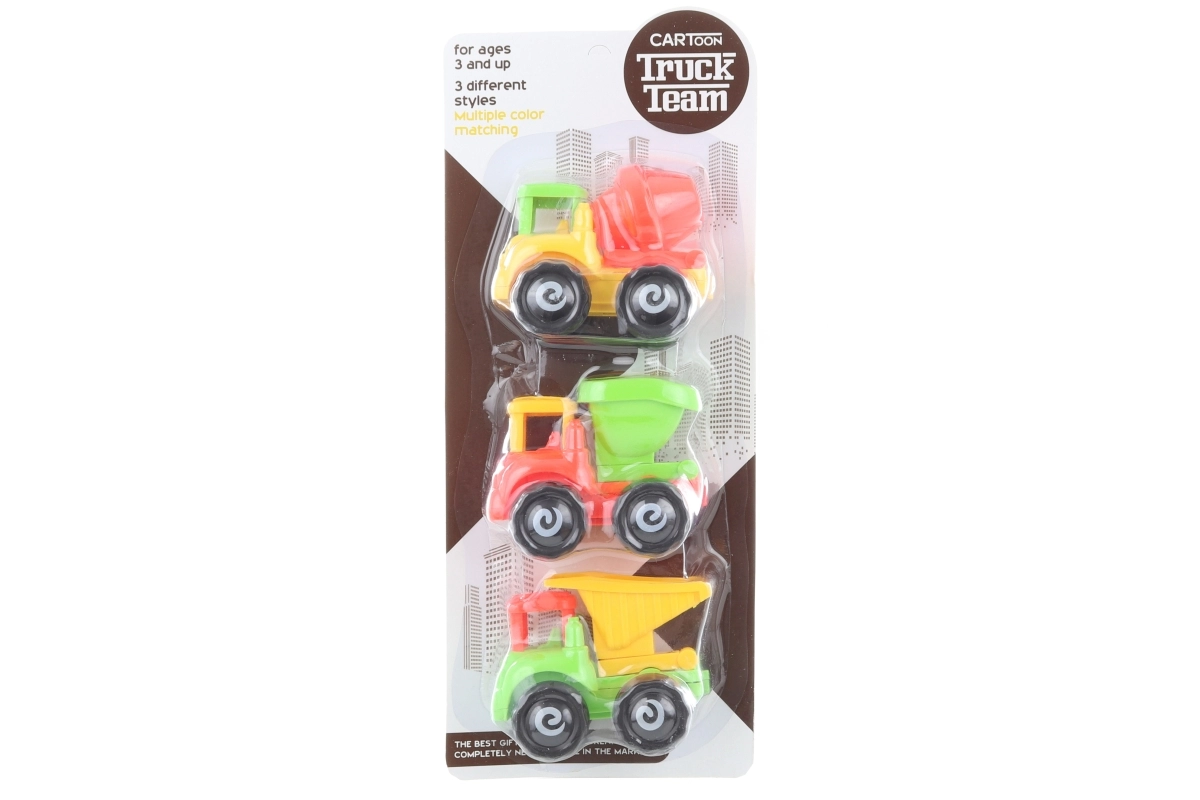 Dieses Set mit Baustellenfahrzeugen enthält drei verschiedene Autos, mit denen Kinder zu Hause und unterwegs ihre eigene Baustelle gestalten können. Dank der kompakten Abmessungen liegen sie gut in der Hand und sind ideal für erste motorische Fähigkeiten.