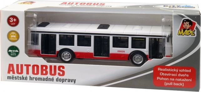 Machen Sie kleinen Fans von Verkehrsmitteln eine Freude. Dieser Metallbus in der beliebten rot-weiß-schwarzen Farbkombination orientiert sich am Design des städtischen Nahverkehrs. Dank der öffnenden Türen und des Rückzugs bietet er viel Spaß und fördert kreatives Spiel.