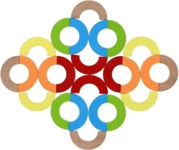 Dieses vielseitige Holz-Mosaik bietet endlose Spielmöglichkeiten – vom Bau von Türmen und Brücken über das Legen symmetrischer Muster bis hin zu Balance-Aufgaben. Robuste, glatt geschliffene Teile in leuchtenden Farben laden zum Entdecken ein und schulen Konzentration sowie Hand-Auge-Koordination.