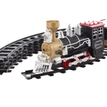 Diese erstaunliche Zugbahn bietet perfekten Spaß für Kinder und Zugliebhaber aller Altersgruppen. Die Lokomotive leuchtet, macht Geräusche und sogar raucht, was zu einem realistischen Fahrvergnügen beiträgt. Dank der detaillierten Verarbeitung und des Retro-Designs mit schwarzen und goldenen Akzenten ist die Lokomotive eine perfekte Ergänzung für die heimische Eisenbahnanlage.