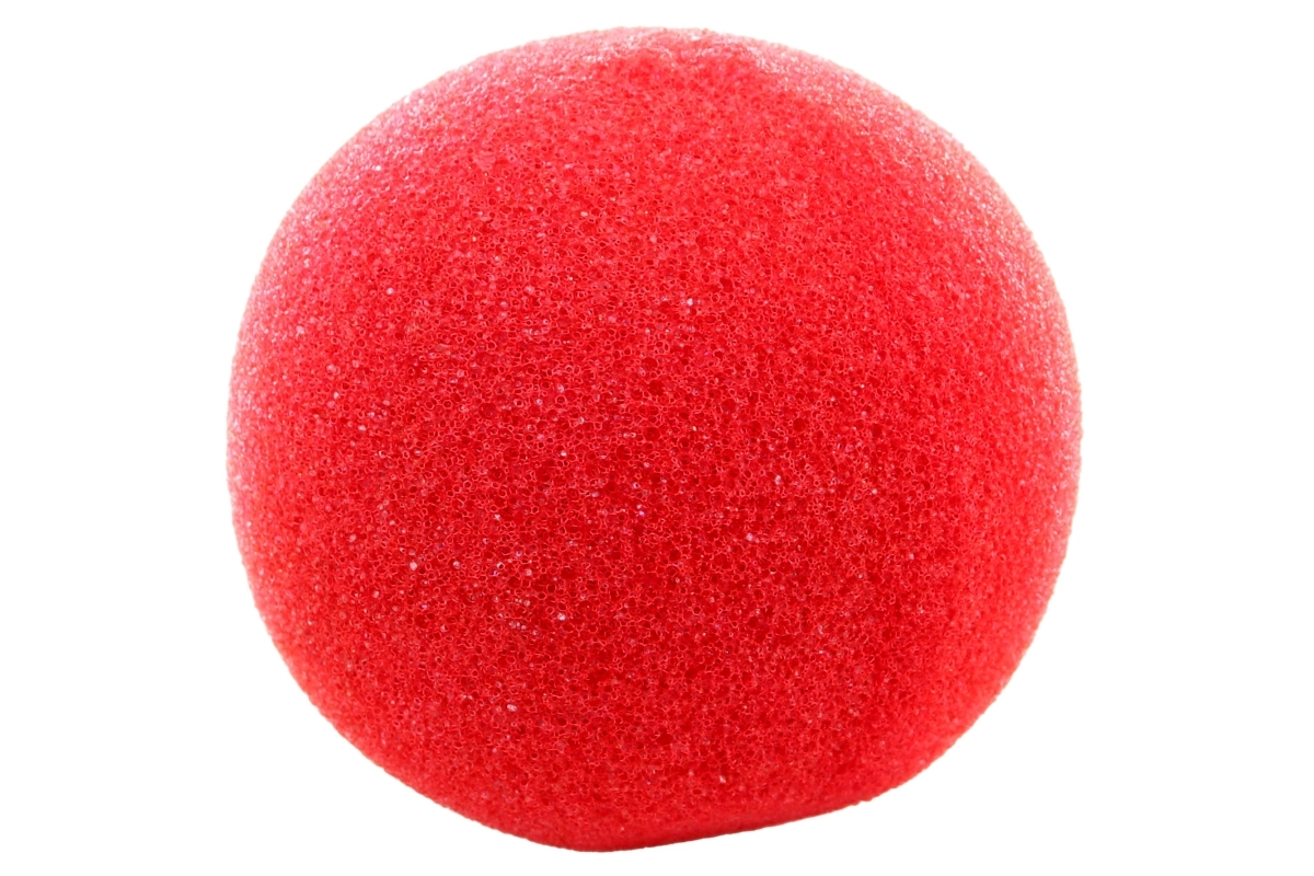 Weiche Schaumstoffnase in sattem Rot, lässt sich leicht aufsetzen, ist leicht und kehrt nach dem Zusammendrücken in Form zurück.
