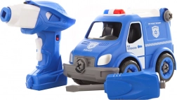 Entdecken Sie ein smartes Spielzeug, das Bausatz und RC-Auto in einem vereint. Kinder zerlegen und montieren das Polizeifahrzeug zunächst und trainieren dabei Geschick und Logik. Nach dem Einsetzen des Motors aus der Bohrmaschine in das Chassis verwandelt es sich in ein ferngesteuertes Auto mit Vorwärts-/Rückwärtsfahrt und Sounds, die für realistisches Spiel sorgen.