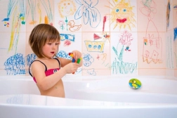 Das bunte Set aus zehn Kreiden im einzigartigen Design Meine ersten Tiere bringt Kreativität und Spaß in Ihr Badezimmer. Kinder können auf der Wanne und den Fliesen malen, während sie mit den Kreiden ihre Kunstwerke schaffen.