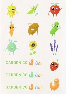 Das Set enthält Gardenico Kids-Aufkleber, die Kreativität fördern und Kindern helfen, spielerisch über Pflanzen zu lernen.