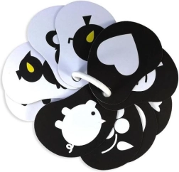Schwarz‑weiße Motive mit starken Konturen helfen Babys ab 3 Monaten besser zu fokussieren und die visuelle Wahrnehmung zu entwickeln.