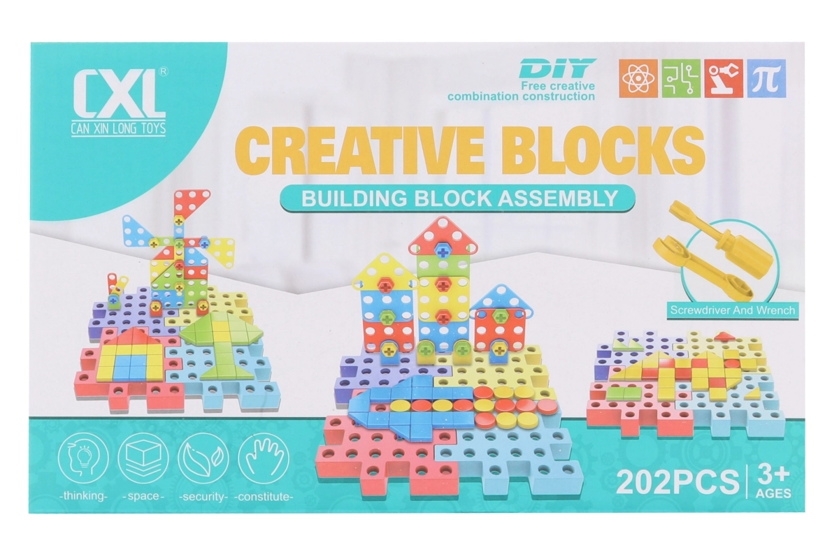 Universelles schraubbares Konstruktionsset für Kinder ab 3 Jahren – fördert die Feinmotorik, Kreativität und logisches Denken. Das Set enthält 202 Kunststoffteile, mit denen Kinder eine Stadt, Fahrzeuge und eigene originelle Modelle bauen können. Das einfache Verschrauben macht Spaß, ist sicher und unterstützt grenzenloses kreatives Spielen.