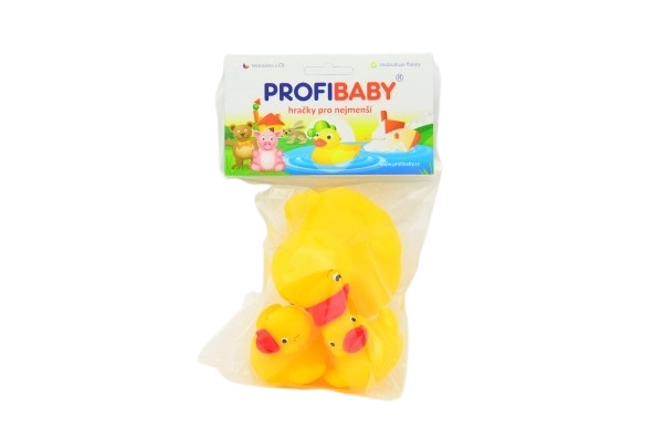 Niedliches Set aus drei Gummienten für spaßiges Baden in der Wanne und im Pool. Das weiche Material ist angenehm zu berühren und sicher für die Kleinsten. Geeignet ab der Geburt, leicht zu reinigen und schwimmt hervorragend auf der Wasseroberfläche.