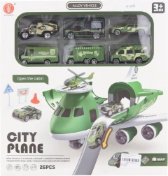 Ausklappbares Flugzeug mit Garagenfunktion ist das ideale Geschenk für Kinder. Beinhaltet 6 Militärautos und 1 Hubschrauber, was stundenlangen Spaß garantiert.