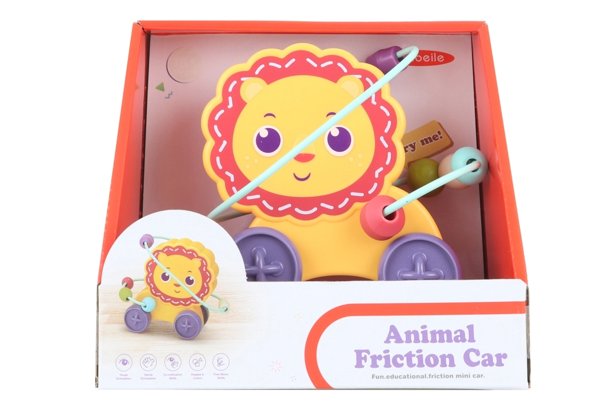 Der niedliche Löwe verbirgt im Inneren ein farbenfrohes Labyrinth mit Perlen, die Kinder entlang der Drähte schieben. Das Spielzeug ist leicht, stabil und kann dank der Räder von Kindern einfach bewegt werden. Eine hervorragende Wahl als erstes Geschicklichkeitsspielzeug für die Kleinsten ab 18 Monaten.