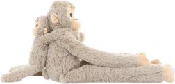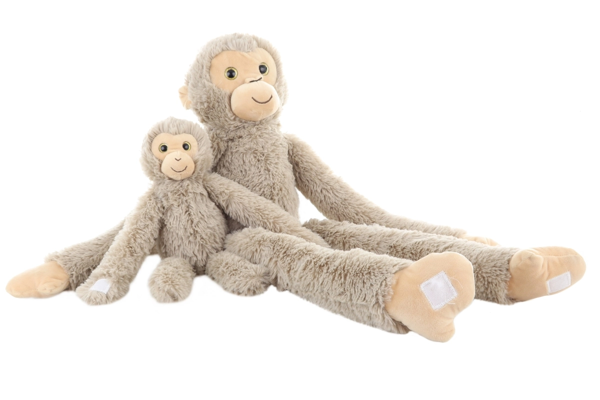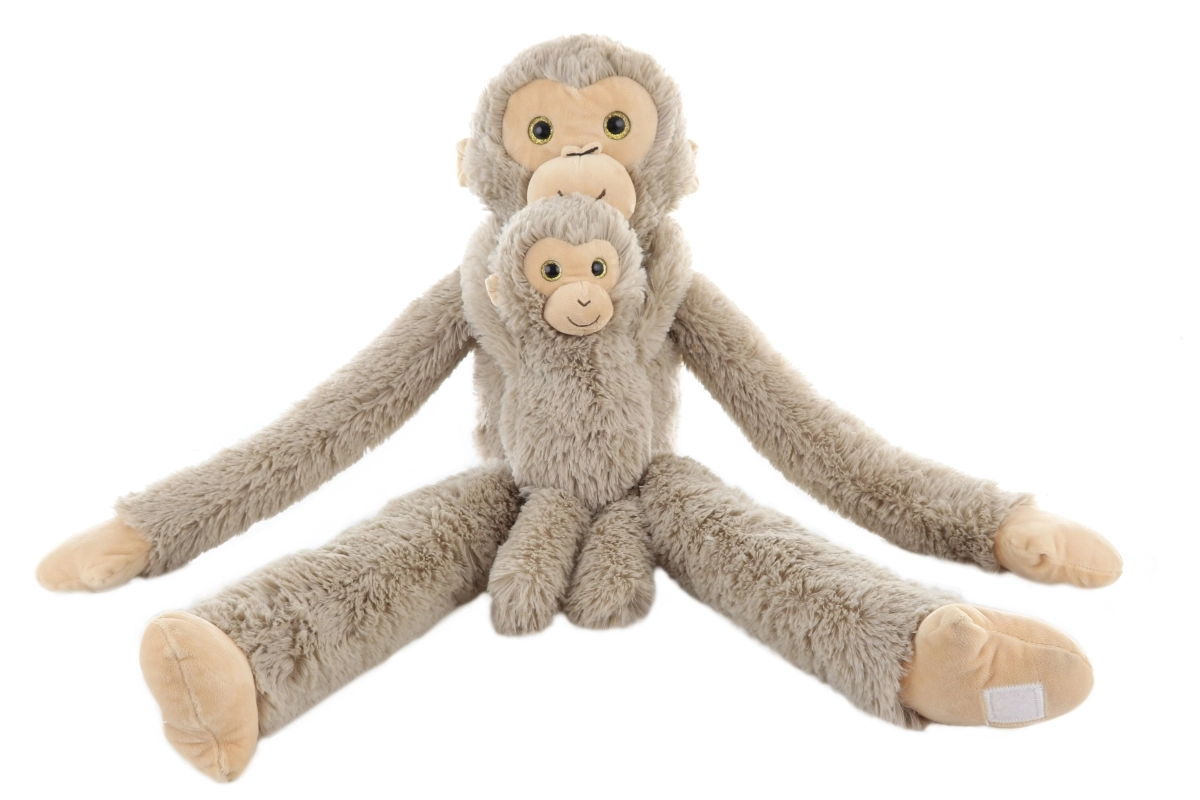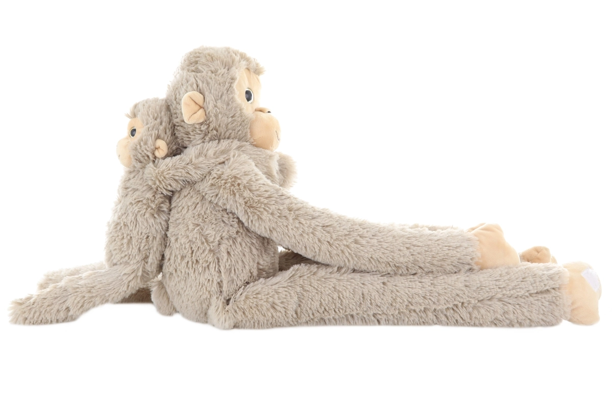 Dieser weiche Plüschaffe mit Baby erobert die Herzen kleiner Tierfreunde im Sturm. Lange, flexible Arme mit Klettverschluss lassen den Affen an Kinder gekuschelt oder aufgehängt werden, während das abnehmbare Baby Rollenspiele und die Feinmotorik fördert.