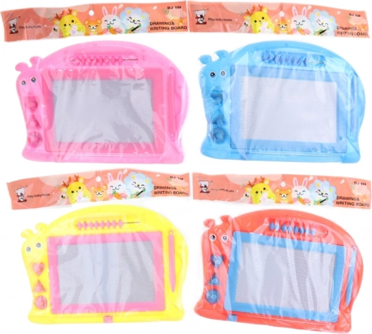 Ein lustiges Zeichenbrett aus Kunststoff in Schneckenform begeistert alle kleinen Künstler. Es bietet einfaches Zeichnen und Löschen mit dem beiliegenden Stift, fördert die Feinmotorik und Kreativität. Ideal für unterwegs und zu Hause, mit kompakten Maßen und sicherer Ausführung für Kinder ab 3 Jahren.