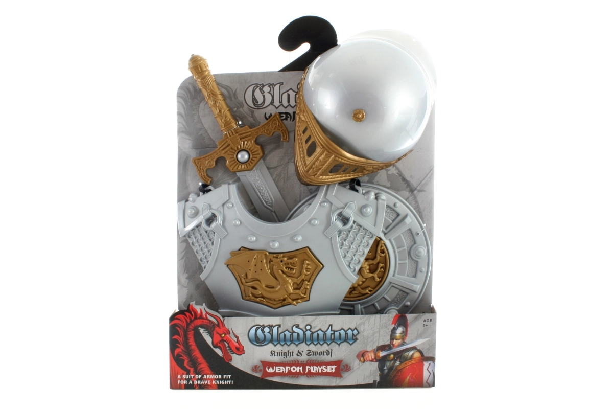 Zum Set gehören ein dekoratives Schwert und ein Schild, ergänzt durch eine Brustpanzerung und einen Helm für einen authentischen Look. Das Set ist auf Tragekomfort und einfaches Anziehen ausgelegt und eignet sich daher perfekt für Kostüme, Karneval und freies Spielen.