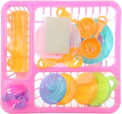 Geschirrset für die Kinderküche mit Abtropfgestell