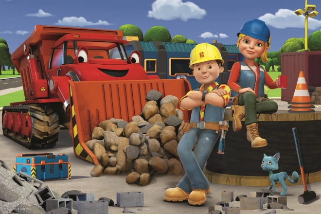 Dieses farbenfrohe Puzzle mit dem Motiv von Bob der Baumeister und seinen Freunden begeistert alle kleinen Baumeister. Dank der 60 Teile ist es ideal für Vorschulkinder, die beim Puzzeln Motorik, Konzentration sowie Formen- und Farbwahrnehmung trainieren. Zusammengesetzt entsteht ein hochwertiges Bild in der Größe 33 × 22 cm.