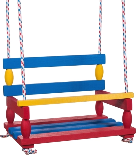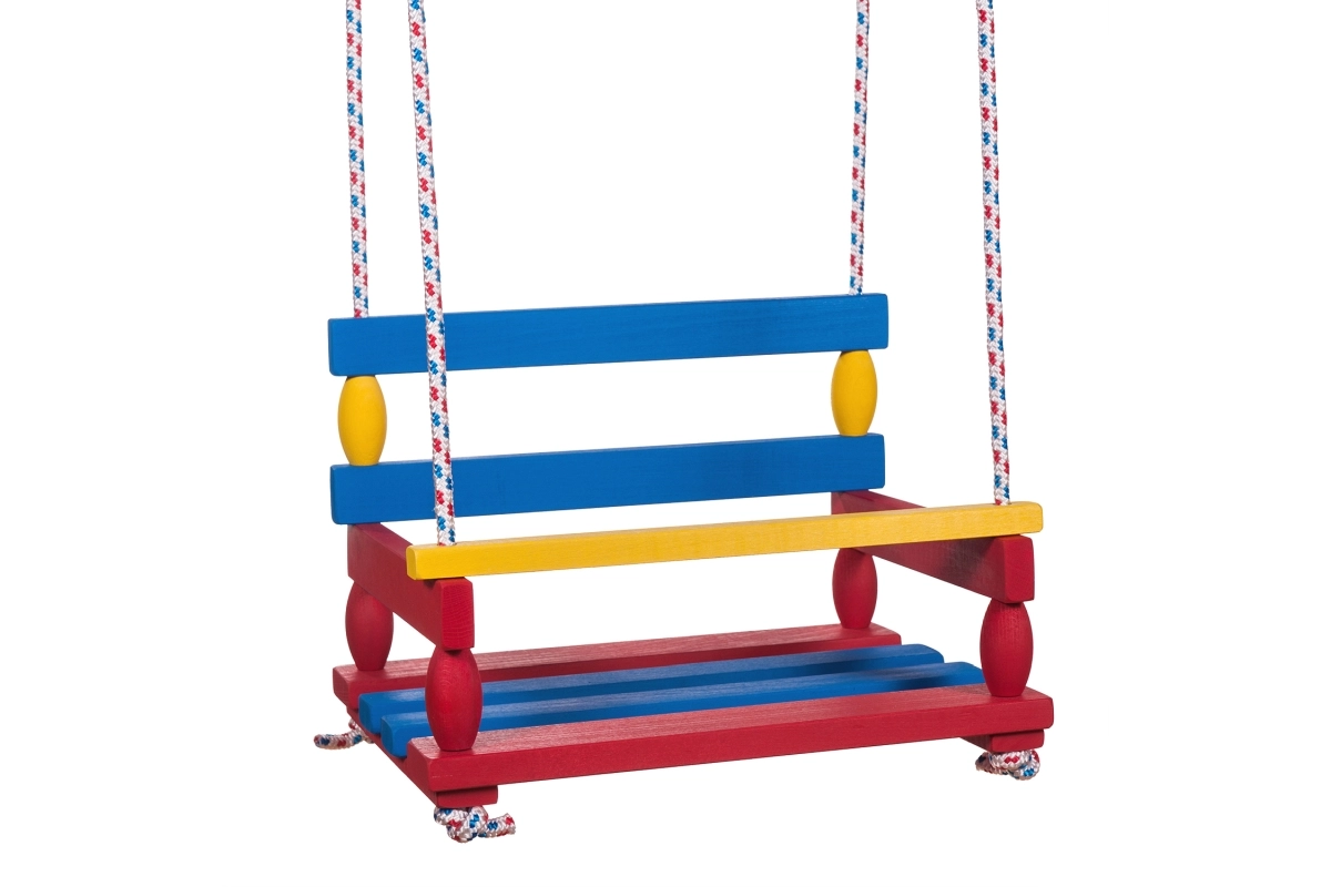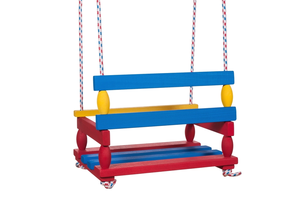 Universelle Schaukel aus Naturholz mit breitem Sitz 40 × 30 cm und Tragfähigkeit bis 80 kg. Ideal für Garten und Terrasse, robuste und stabile Konstruktion, einfache Montage und tschechisches Produkt in praktischer Beutelverpackung.