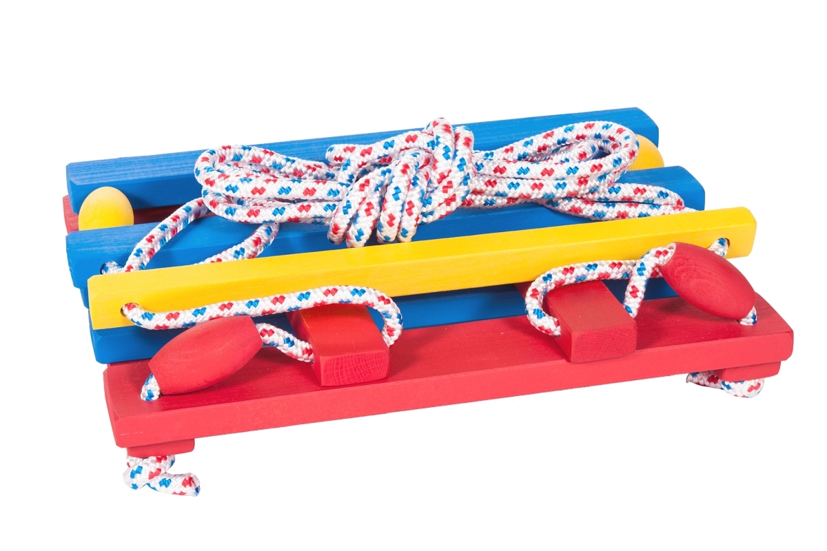Robustes Holz und strapazierfähige Seile gewährleisten hohe Stabilität für Kinder und Erwachsene.