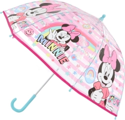 Stilvoller transparenter Regenschirm mit MINNIE-Motiv, der Kinder und Disney-Fans begeistert. Er bietet manuelle Bedienung, kompakte Abmessungen und Schutz vor Regen mit fröhlichem Design.